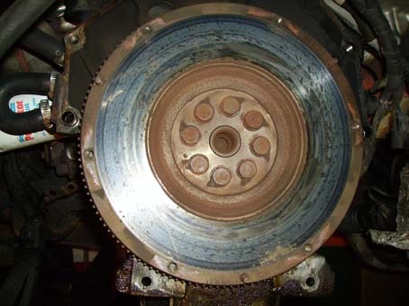 25. Remove clutch and pressure plate. Put the mask on and keep it on for the next few steps. Loosen the 6 10mm bolts in stages – a few turns for each one, as the p-plate is spring loaded. Once loose, lower the p-plate and clutch carefully, as it’s heavy. Try to create as little dust as possible. Pic 16 old clutch…nasty but it lasted 82k miles. ![]() 26. Remove the flywheel. Get the impact gun and loosen the 8 bolts. They’re