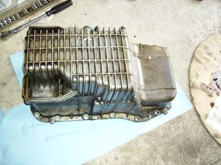 28. Remove the oil pan and carrier seal. See pics below. Oil pan removed: ![]() Carrier plate, without seal: