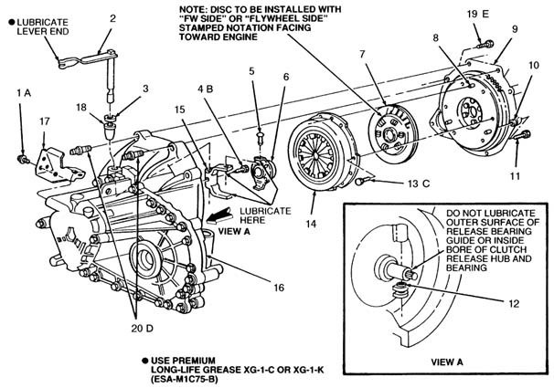 Thanks to Gez89SHO for this write-up I recently changed the clutch on my ’89. I did a similar job before on a simpler car and felt ready enough to attempt this. Now that it’s done, I decided to write up this procedure. While there is a lot of info here already- I did read a whole lot on the forum, and the Helms Manual before deciding on the job -I wanted to put everything in one easy to reference place. So here is the “How I did it”: Disclaimer: Before you begin, please realize that this is a guide. Be careful while working – I am not responsible if you render your car inoperable, or for any injuries you or anyone helping you may receive. Read through this whole procedure and ensure you have the resources to complete it. This is a hard job, and while not impossible, not everyone can do it. There are parts that can fall down, break, fall on YOU, leak, strip, get lost, etc. Also, you will be working with hazardous materials-clutch dust contains asbestos, and the fumes from the cleaning agents won’t help also. Have it done professionally if you feel uncomfortable. Stuff you need: Time to finish – while some can do it in a day, it can take you a week if you never did it before. Take your time- parts/tools can break, you will be waiting for stuff to come in, and if you get frustrated/tired, it’s best to leave it for later. Location- preferably find a garage to work in, with plenty of room to walk around the car and to allow for parts storage. Ensure it has adequate ventilation. You will take off the subframe and transaxle (and more) , so you’ll need a bit of floor space. You can work outside if it’s level and secure, but you really should be indoors. This will take a long time, and you don’t want to stop just because it’s raining. You will need an assistant to help remove and reinstall the transaxle, subframe, and y pipe. Ensure you have another car to drive while this one is down. Inventory control-whenever possible, put nuts/bolts back into where they were removed from. This cuts down clutter, and eliminates guessing “where does this bolt fit?” Tools/items: besides common tools