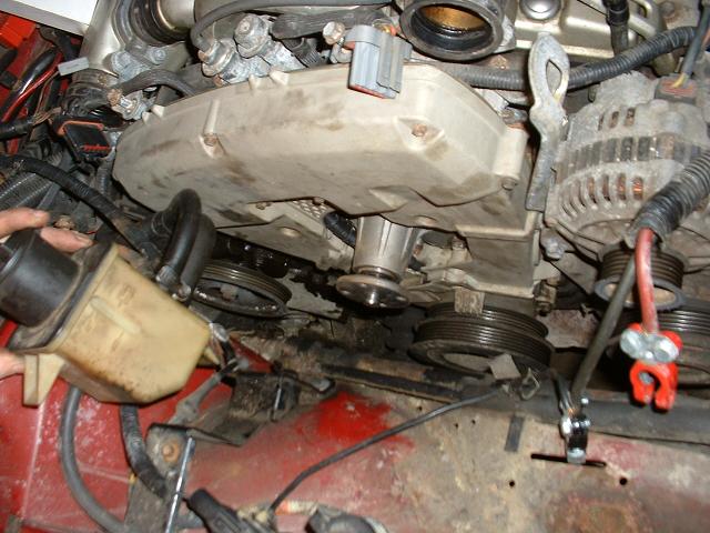 Then remove the water pump pulley. (You should already have unbolted it in step 8)