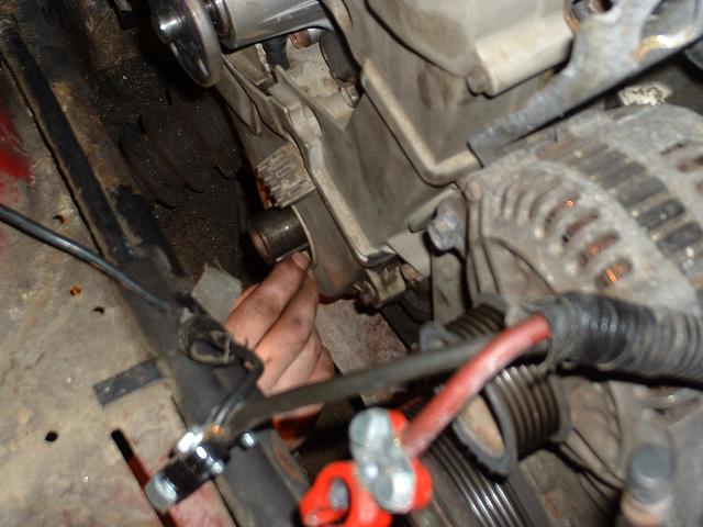 Then remove the two 10mm bolts holding the bottom of the roll damper to the engine block These can be a pain to get to and you might find it easier to first remove the belt tensioners. In these pics you can see the socket on the bolts.