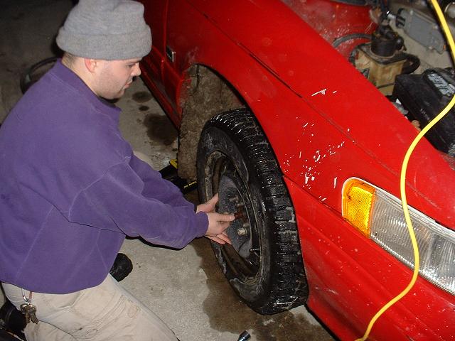 Rachet and socket set, 1/2" drive, 6 point 19mm socket required 1. Loosen the lug nuts. Set the parking brake, chaulk the wheels, safely jack up the car, and set jackstands under the subframe. THen remove the wheel.