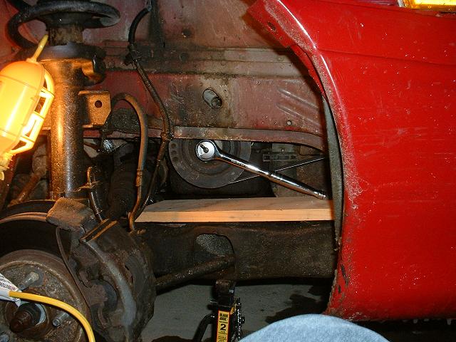 Place a piece of wood under the handle of the ratchet to give it something to press against