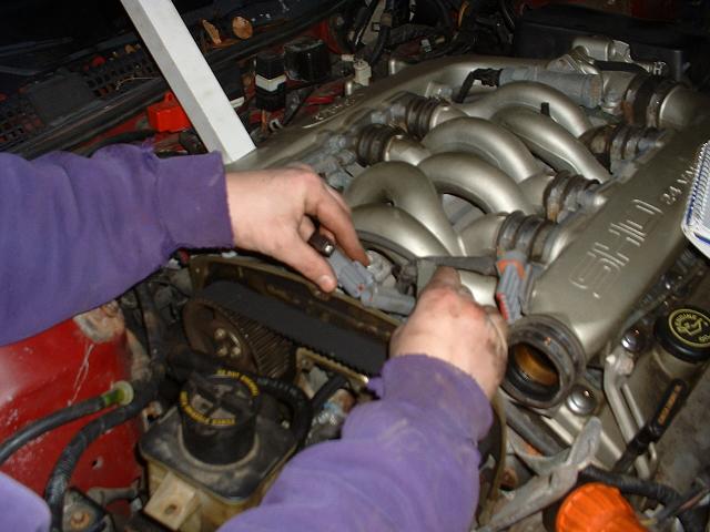 14. Remove the middle timing belt cover First we have to unplug the CPS from the main harness. There are two plugs.