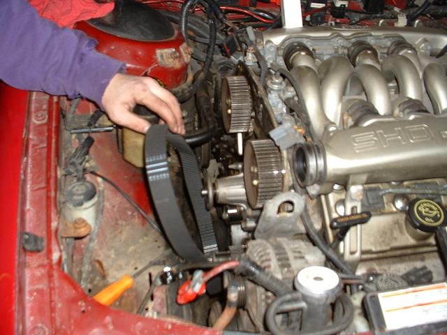 Now we can pull off the cover and our first look at the timing belt! Looks good! (It's brand new)