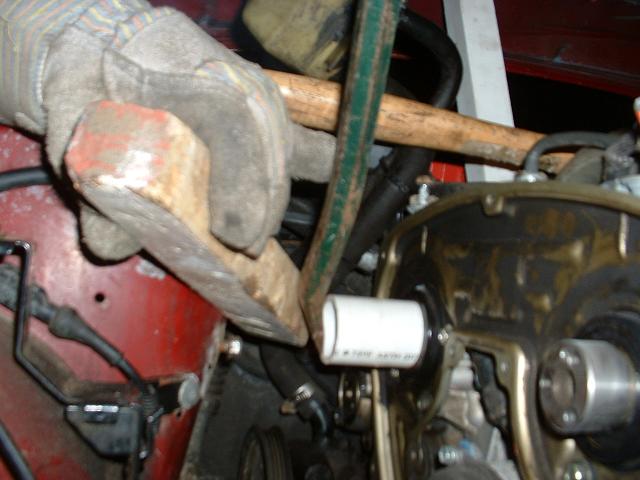 and info on removing the timing belt on an ATX: Use a large C-clamp to compress the