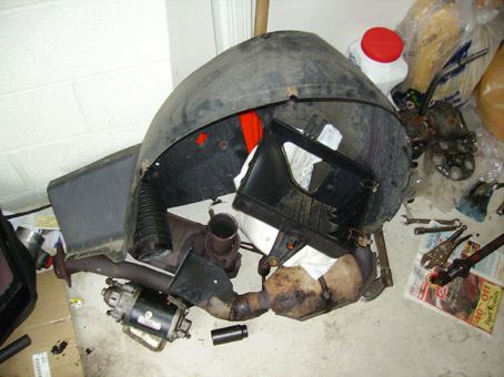 then loosen and remove top of air filter housing. Now unbolt the bottom half and