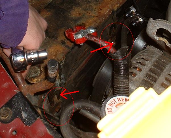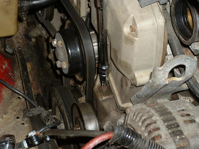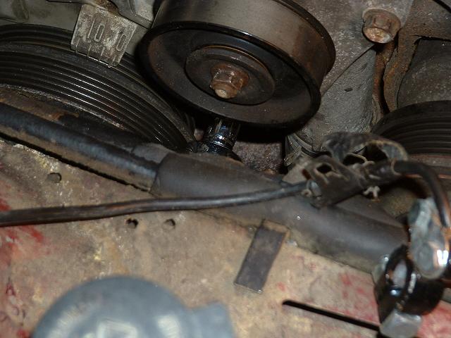 A pic of the tensioner being removed. Notice the length of the bottom bolt.