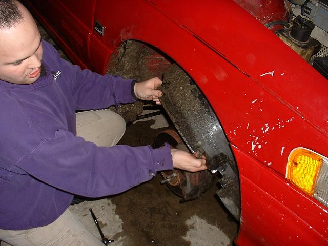 Rachet and socket set, 1/2" drive, 6 point 19mm socket required 1. Loosen the lug nuts. Set the parking brake, chaulk the wheels, safely jack up the car, and set jackstands under the subframe. THen remove the wheel.