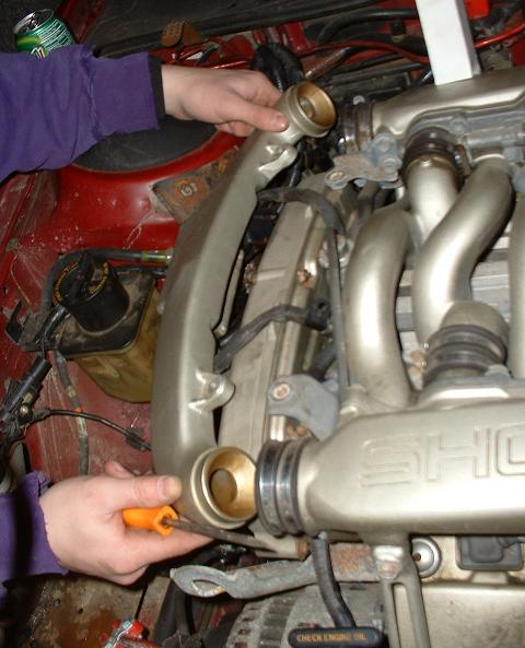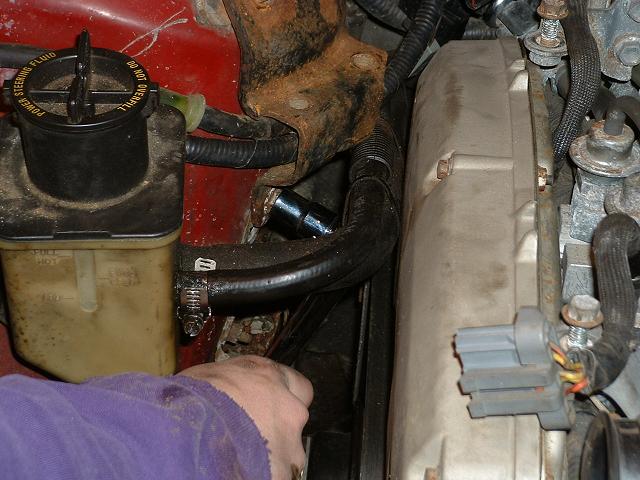 Pull the crossover tube off