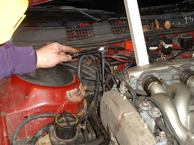 Then remove the two 10mm bolts holding the bottom of the roll damper to the engine block These can be a pain to get to and you might find it easier to first remove the belt tensioners. In these pics you can see the socket on the bolts.