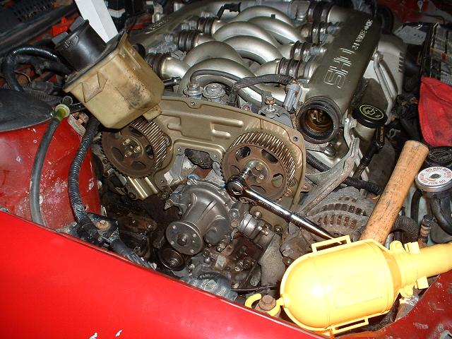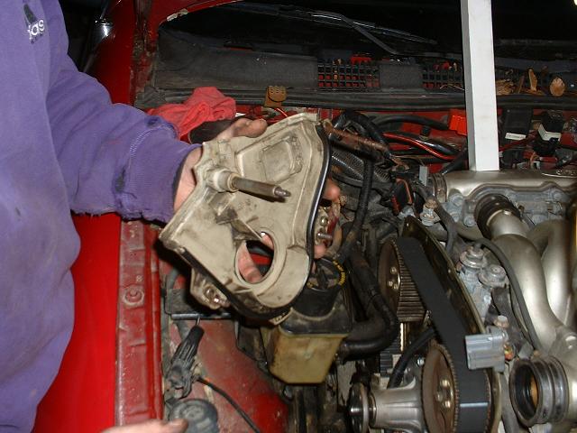 Now we can pull off the cover and our first look at the timing belt! Looks good! (It's brand new)